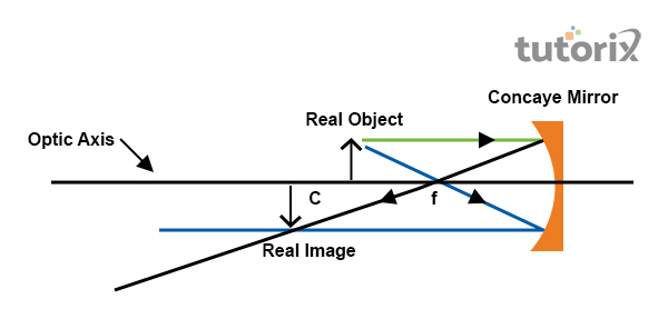 In such cases, the size of the image is determined by the placement of the object. At the point where the interaction of the rays of light happens, a real image is formed. The nature of this kind of image is inverted and visible on the screen.