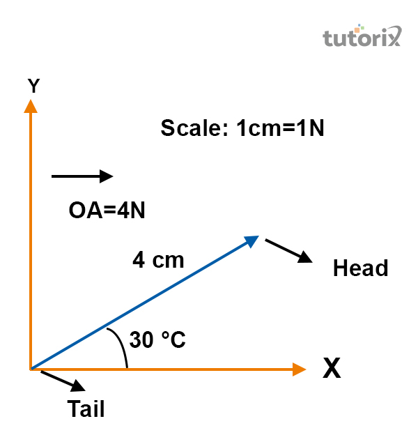 As presented in the above figure, a vector quantity is situated on the X and Y-axis. The angle, created within vector quantity and X-axis is 300. The vector quantity is calculated as 4 cm.